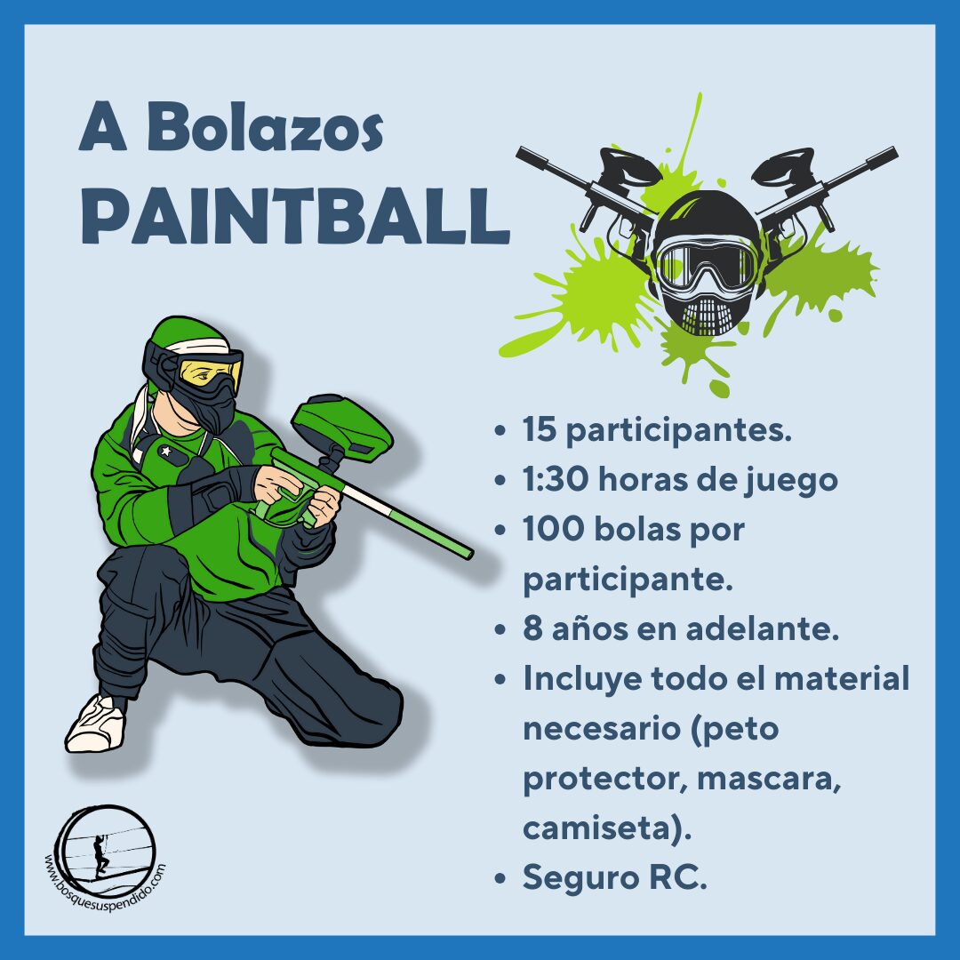 Consúltanos si quieres cambiar alguna de las actividades de este programa. El Paintball es específico para menores y es una actividad junto con la galería de tiro, que les encanta a todos.
